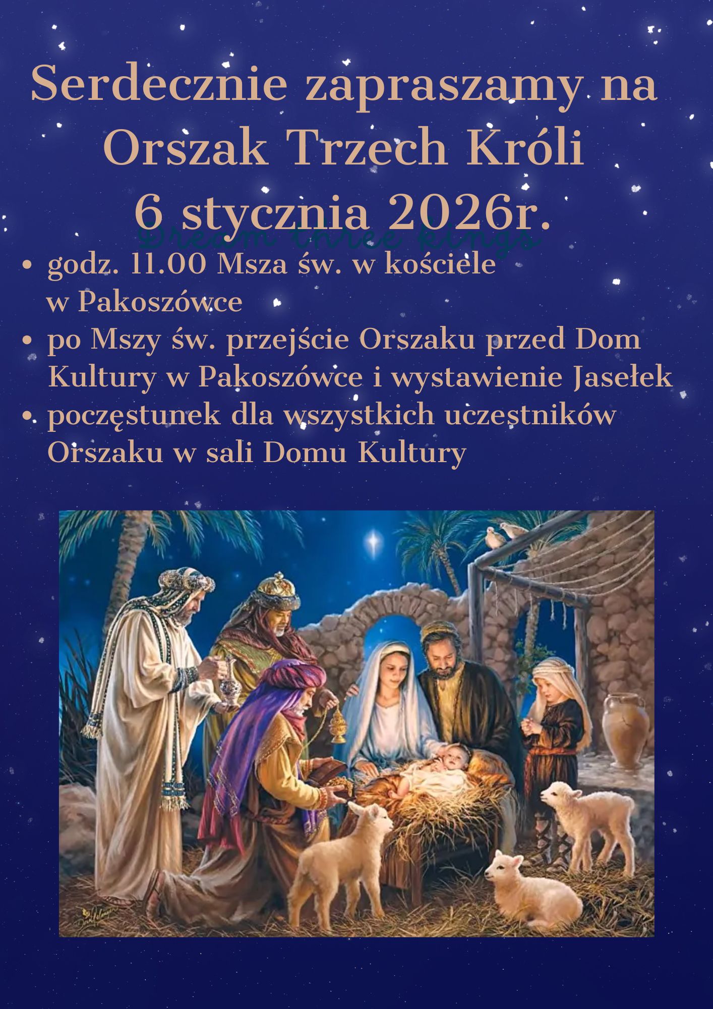 Serdecznie zapraszamy wszystkie Przedszkolaki wraz z Rodzinami do świętowania Dnia Objawienia Pańskiego. Podczas wystawianych Jasełek, dzieci zaśpiewają pastorałkę wraz z Zespołem Pakoszowianie.