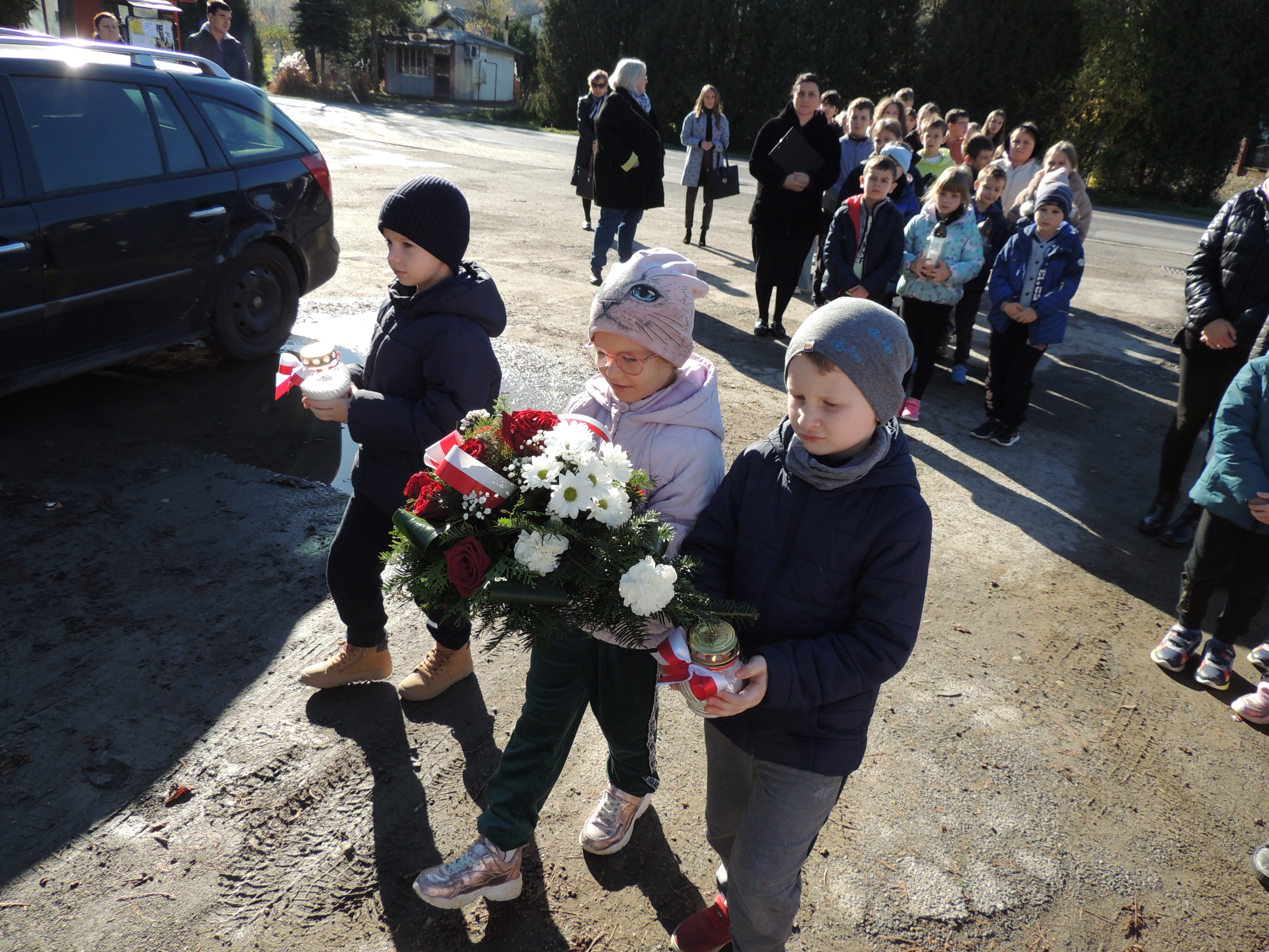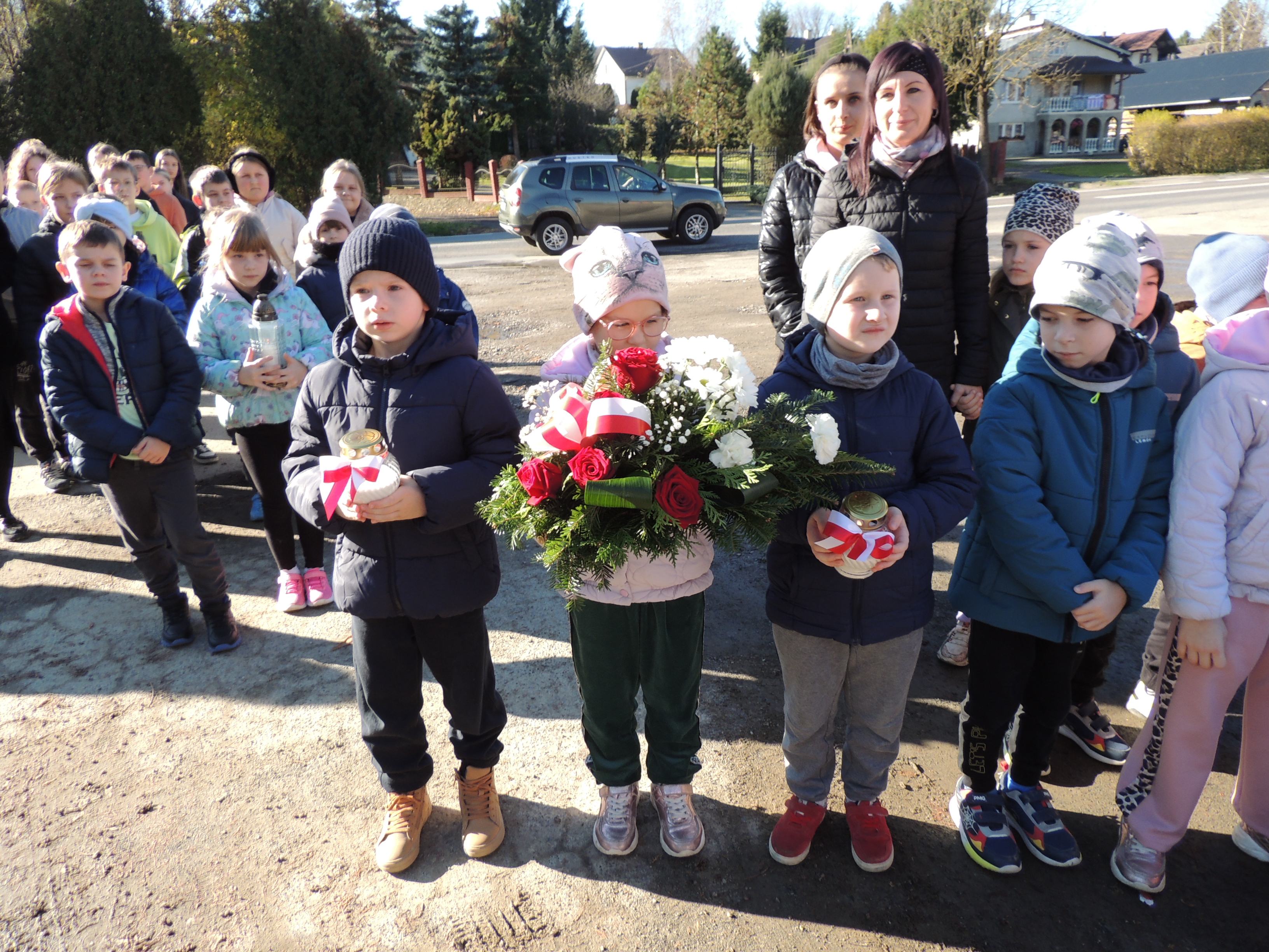 W czwartek 6 listopada, przedszkolaki wspólnie z uczniami Szkoły Podstawowej w Pakoszówce, wzięły udział w uroczystym złożeniu kwiatów i zniczy przy pomniku poległych żołnierzy AK. Wydarzenie tradycyjnie zostało zorganizowane z okazji zbliżającego się Święta Niepodległości, aby uczcić pamięć bohaterów, którzy walczyli o wolność naszej Ojczyzny.
